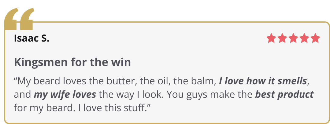 I have tried a few beard products in the past. Since adding Kingsman to my beard care routine I ABSOLUTLY love it my beard is soft and smells amazing. The beard butter is amazing it helps my beard stay moisturized and the fragrance of this one is awesome the wife loves it!